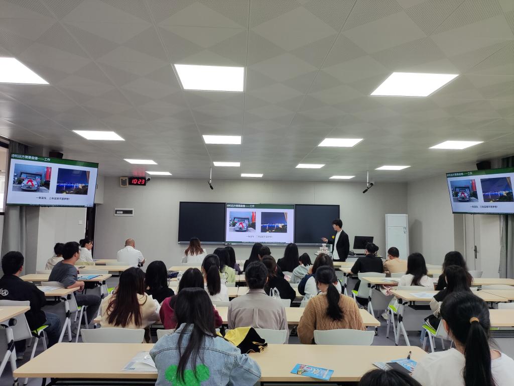 为更好地引导大学生树立正确的就业观、择业观,积极在科技创新、乡村振兴、绿色发展、社会服务等领域争当排头兵和生力军。11月7日下午,学院团委在06203教室组织开展“就业大讲堂·青年榜样进校园”主题宣讲活动,100余名团员和毕业班代表参加活动。