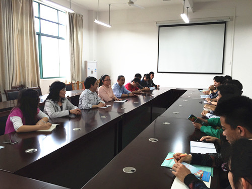 4月1日下午,防城港市环境保护局副局长郑里华来到我院,与即将毕业的部分2011级本科生进行了座谈,学院党委书记梁军,院长李建平,党委副书记陶剑飞,应化教研室主任陶慧琳参加了座谈会。