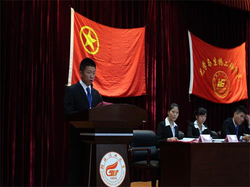 团旗飘扬彰显青春风采,团徽闪耀绽放奋进激情。11月30日,桂林理工大学化学与生物工程学院迎来了第二次团员代表大会暨学生代表大会。肩负着校团委、院党委的信任和重托,心怀着全院学生工作的发展,来自各年级的170位团员学生代表齐聚一堂,共话青年队伍建设成就,共谋未来四年的宏伟蓝图。 下午14:00,大会在桂林理工大学图书馆报告厅正式拉开帷幕。莅临本次大会的有化生学院党委副书记陶剑飞老师,化生学院副处级调研员、学工组长周德海老师,化生学院团委副书记饶筠筠老师,校学生会副主席覃思及各学院代表。 本次大会主要议程有四项,分别为: 第一、听取和审议共青团桂林理工大学化学与生物工程学院第一届委员会工作报告;第二、听取和审议桂林理工大学化学与生物工程学院第一届学生委员会工作报告;第三、选举产生共青团桂林理工大学化学与生物工程学院第二届委员会;第四、选举产生桂林理工大学化学与生物工程学院第二届学生会。 会议由化学与生物工程学院第一届团委组织部部长杨海丽主持,首先进行的是大会预备会,预备会上审议并通过了大会主席团、秘书长名单,大会的资格审查小组名单。下午14:30,大会正式会议在雄壮的国歌声中正式开始,化生学院党委副书记陶剑飞老师为大会做了开幕词。陶剑飞副书记在讲话中充分肯定了四年来我院的共青团工作,体现了学院党委对我们的充分信任和高度重视,为今后共青团的发展提出了更高的要求。接着,校学生委员会副主席覃思同学代表校学生委员会对我院团员代表大会暨学生代表大会的召开表示祝贺,并致祝贺词。