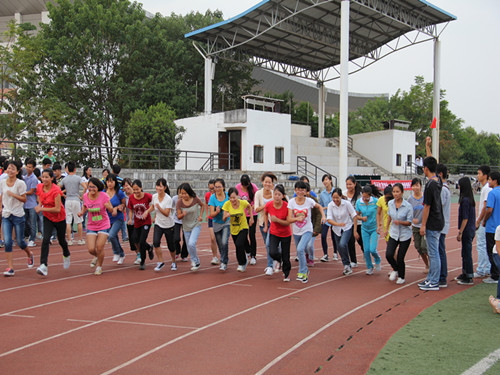 为全面落实和推进将全民健身运动作为我校学生工作重点的要求,切实增强我院学子参加体育锻炼的主观能动性、形成良好的体育锻炼习惯、提升身体素质,为更好的将体育锻炼工作形成长效机制,经过两周晨跑测试及多次讨论,我院决定自本学期始在大一大二学生中组织开展“体质最强班”系列活动,并于2014年10月28日下午16:30在雁山足球场全面启动,并进行了首次“谁是大英雄”班级团体长跑大赛。学院党委副书记陶剑飞、团委副书记饶筠筠、各年级辅导员, 2013、2014级全体学生参加了此次活动。