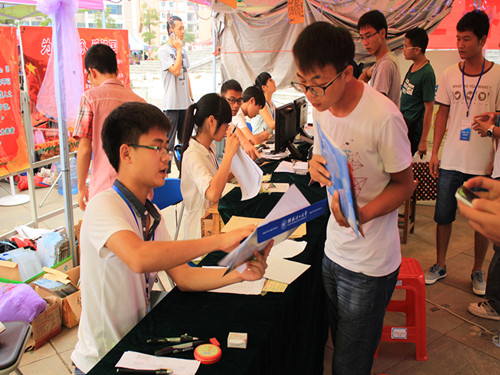 九月的骄阳也挡不住志愿者们的热情,在烈日下,志愿者们汗如雨下也毫无怨言。他们顶着烈日的烘烤在新生下车处等待,从新生下车到办理各种注册手续再到帮他们将行李提到宿舍,志愿者们为新生提供了最全面的一条龙服务。他们将一杯杯清水端到新生家长们的面前,自己却顾不得喝上一口,他们的无私奉献的精神,充分体现了我院学子的优良品质。