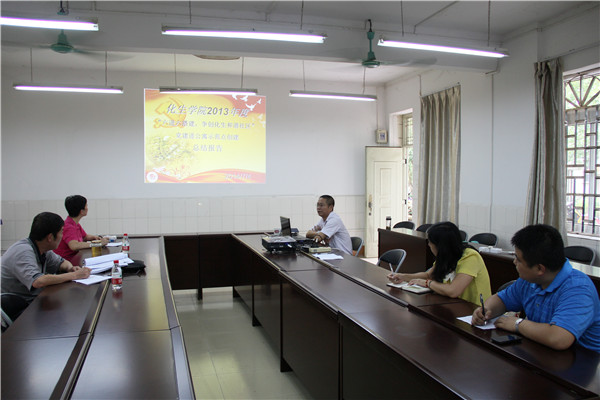 会上,梁军书记结合PPT材料,着重从示范点创建计划的制定、执行情况、总结成果、存在的问题以及下一步工作计划等方面为检查小组成员介绍了我院以“六进六搭建,争创化生和谐社区”为主题的党建进公寓示范点创建的情况;接着,我院本科一支部书记杨建辉为检查小组介绍了我院2013年优秀党支部创建项目的具体开展情况以及取得的效果。在听取了汇报后,于尔佐老师充分肯定了我院在学校第二轮党建示范点和优秀支部创建项目中所取得的成效,指出了创建过程中的不足之处,并对下一阶段的创建工作、成果推广方面提出了宝贵意见。之后,双方还就如何推广党建示范点成果,形成长效机制等问题进行探讨。
