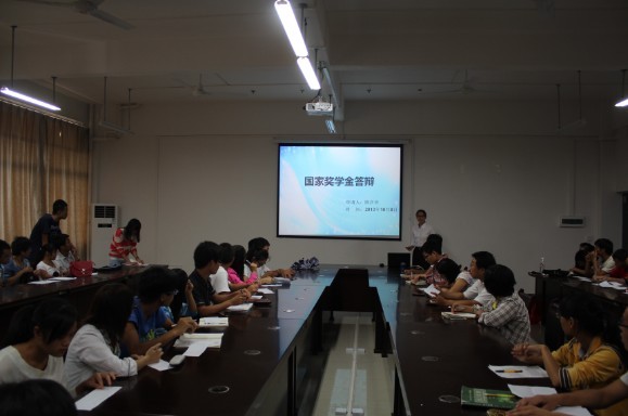 为了充分体现国家奖学金评选工作的公正公开公平原则,给我院学生提供一个展现自我、互相交流的平台,我院于10月8日中午在12209 教室举行2012-2013学年度国家奖学金答辩会。学院党委副书记陶剑飞与各年级辅导员担任嘉宾,各班级同学代表一起参加了答辩会并担任大众评委。